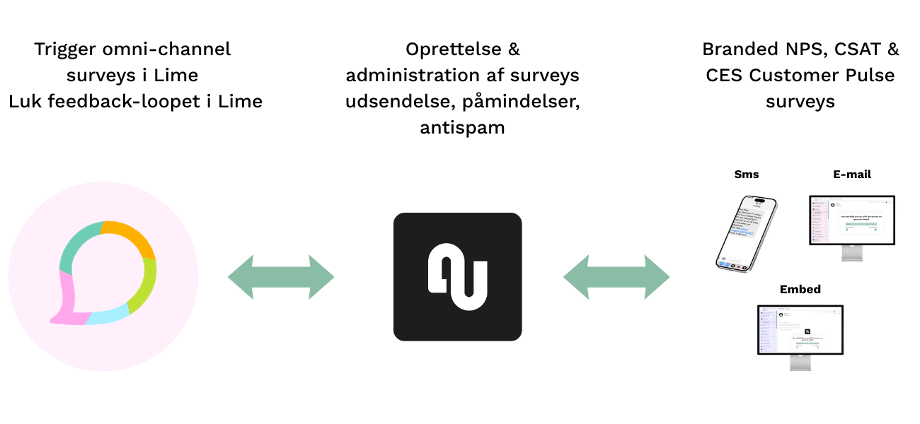 NPS-, CSAT- og CES e-mail og SMS-surveys udløst direkte fra Lime