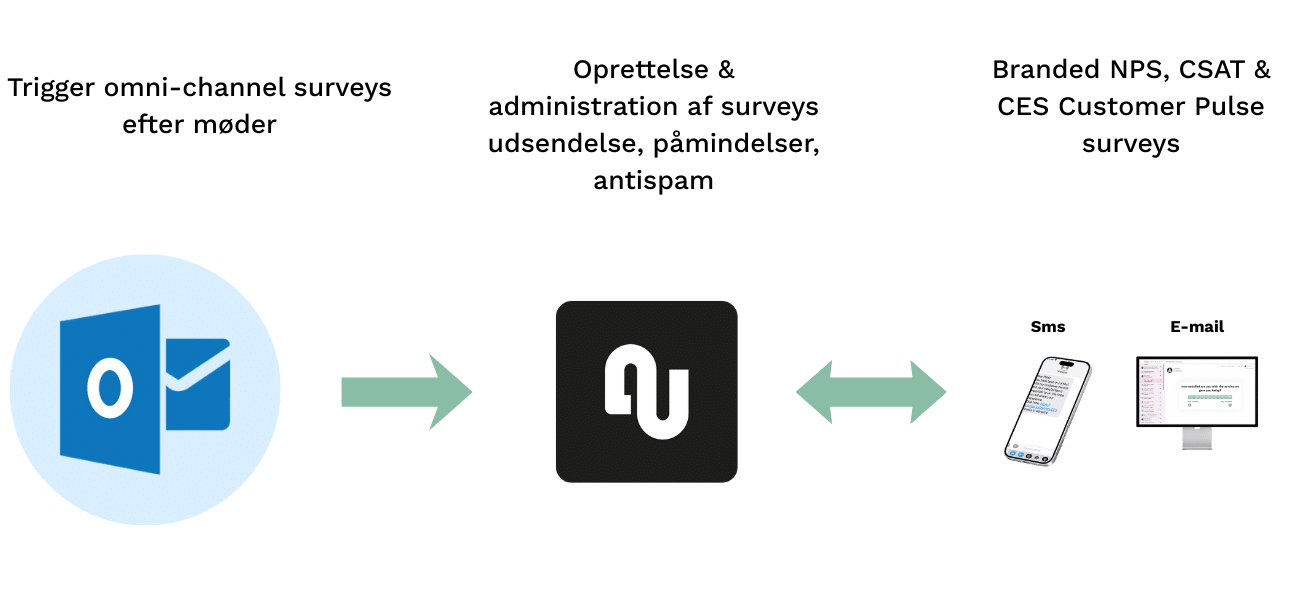 NPS, CSAT og CES e-mail- og SMS-surveys sendt fra Outlook-møder
